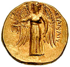 on public statues, since destroyed. The Nike on Alexander's gold coins may have been based on the Nike of the coins