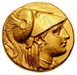 | Gold A good part of the appeal of Alexander staters is the appeal of the metal they're minted from. There's nothing like the allure of ancient gold. From the earliest times it has been valued far above its utilitarian worth. Gold is too soft to be used to make agricultural tools or weapons. It's purely decorative, and through its beauty -- it's the color of the sun, giver of light, warmth, and life -- it took on religious symbolism. Gold was used by the first civilizations in Sumer and Egypt and earlier as well, by the peoples of prehistoric Europe. Not only does gold shine more warmly than any other numismatic metal, it keeps its glow better too, nonreacting to is surroundings, satisfied to stay just the way it is, for millennia. Gold's resistance to corrosion, its "incorruptibility," also played a role in its appeal and religious significance. But gold in its pure state is very vulnerable to human contact -- touch it too hard and it will dent. This malleability allowed gold to be molded into religious figurines and so on from the earliest of times. Gold is extremely dense, each atom jam-packed with protons, neutrons, and electrons. You can feel the heft of those minuscule atomic particles when you pick up a gold coin. And of course it's rare, showing up in small amounts only five times per billion in the earth's crust, typically hidden away amidst copper and lead, quartz and pyrite. Alexander had native gold mines in Macedonia and Thrace. But much of his gold coinage was minted from captured Persian gold bullion, the Fort Knox of the ancient world. Based upon the writings of such ancient authors as Arrian, Curtius, Diodorus, and Plutarch, the total amount of gold and silver bullion captured between 333 and 330 BC has been variously estimated to be worth between 180,000 and 400,000 talents of silver or the equivalent of 54 million to 120 million gold staters or 270 to 600 million silver tetradrachms. This represented the world's most massive transfer of wealth until the Spanish exploitation of the New World in the 16th and 17th centuries, according to Christopher Howgego in his 1995 book Ancient History From Coins, and marked one of "great turning points in history," with Rome later feeding upon this stored wealth. Not all of this gold and silver bullion was converted into coinage, but the coinage was nonetheless still huge. Gold and silver bullion was valued in terms of talents of silver, a talent equaling 1,500 silver tetradrachms or 300 gold staters. A stater in turn may have been worth about 20 days' wages of a common laborer or about $1,000 in today's money. Alexander's relative output of gold coinage was so massive that it temporarily lessened the value of gold compared with silver. Before Alexander, gold was used relatively infrequently for coinage compared with silver and was valued at about 13 times that of silver. Alexander reduced gold's value to 10 times silver's, with one of his gold staters neatly equaling in value five of his silver tetradrachms. Later, the value of gold rose to pre-Alexander levels. Much of the Persian gold that Alexander used for his coins was obtained in trade from the Skythians, who mined it in areas ranging from present-day Kazakhstan to Mongolia, according to Michael Mitchiner in his 2004 book Ancient Trade and Modern Coinage. The Greeks, Macedonians, and Thracians also obtained gold in trade from the Skythians, through Pantikapaion, Olbia, and other cities in the northern Black Sea area. Other plentiful sources of gold in the ancient world included Tajikistan, rivers in Georgia and Turkey, mountains in Romania and Ukraine, and Ghana in West Africa, where it was imported to the Mediterranean world through Egypt. Most ancient gold was as pure as could be refined using the technology of the times, and that technology was surprisingly effective (thought to involve cupellation with lead followed by cementation with salt). Alexander staters are .997 fine, according to K. de B. Codrington in his article "The Basis of Coinage" in the University of London Institute of Archeology's Bulletin Number Six (1967). This is only a smidgen less pure than 24 karat gold, which is .999 fine. In contrast, most U.S. gold coins are .900 fine (some have slightly more gold, some have slightly less), with U.S. gold coins being alloyed with silver and/or copper. |