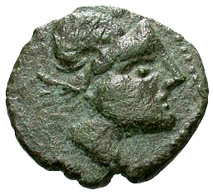 This is the smallest denomination of the same Lysimachos bronze type, depicting a lion head facing forward. A rare variety of the same denomination depicts the lion head facing right. The above specimen is a bit heavier than others I've seen, which is probably just commentary that the weight of bronzes weren't tightly controlled because they were largely fiduciary, with their monetary value significantly higher than their instrinsic value. |