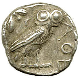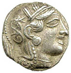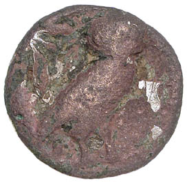 The coin above is an emergency-issue classical Athenian